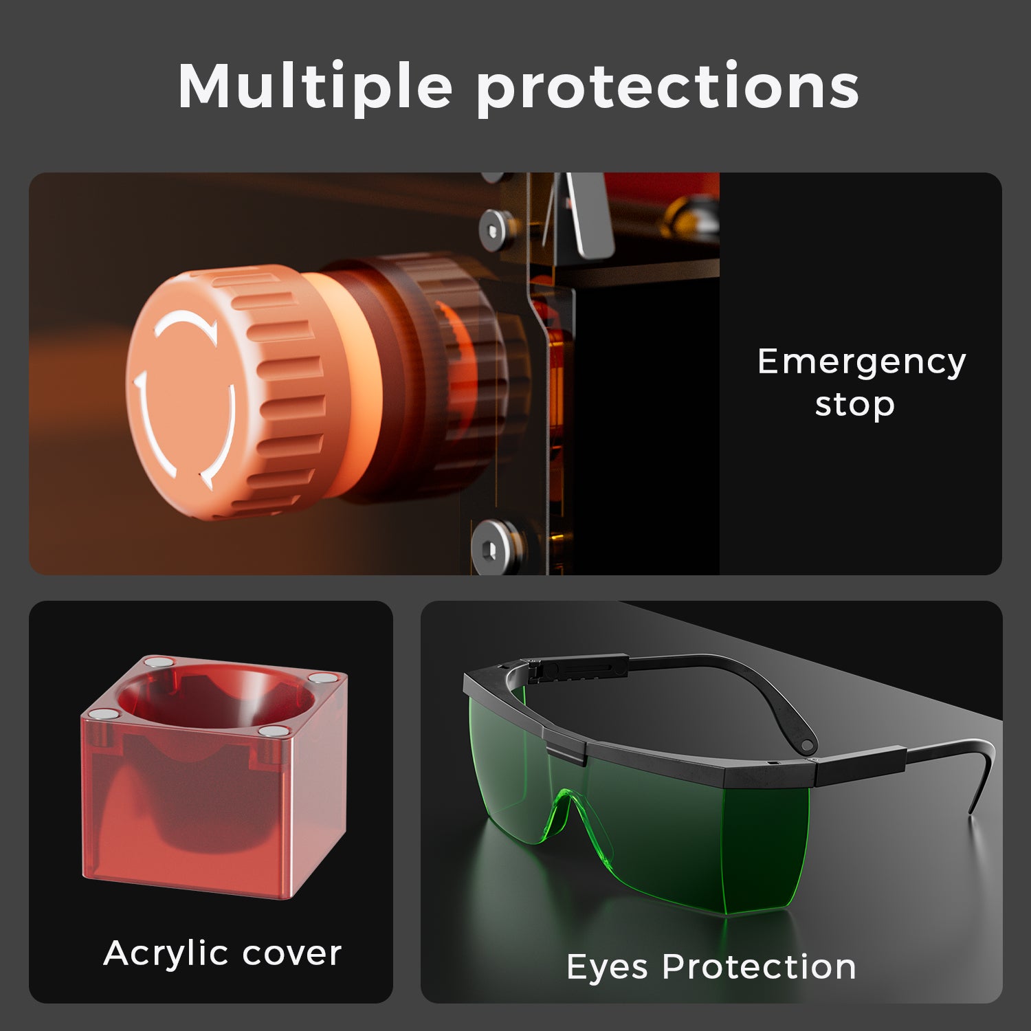 - Interrupteur d'arrêt d'urgence situé à l'avant de l'appareil