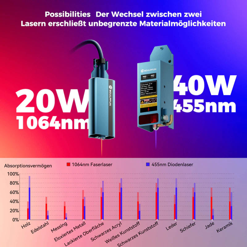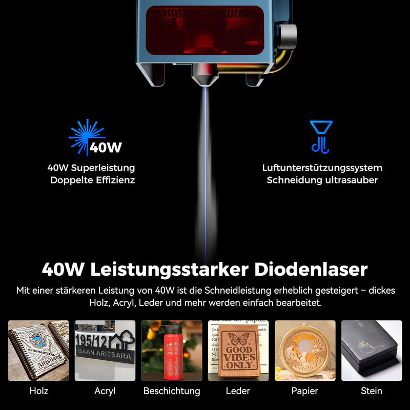 1. Laser puissant de 20 W : La Sculpfun SF-A9 est équipée d’une tête laser de 20 W offrant des performances de découpe élevées. La puissance du laser est réglable entre 40 W et 20 W. Ceci permet, par exemple, de découper du contreplaqué de 20 mm ou de l’acrylique foncé de 6 mm en une seule passe. Le système de refroidissement par caloduc intégré assure une dissipation thermique rapide et homogène.