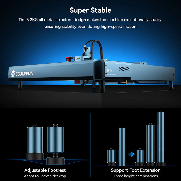 3. Vitesse élevée jusqu'à 36 000 mm/min : La SF-A9 prend en charge la gravure à grande vitesse jusqu'à 36 000 mm/min. Sa structure robuste garantit des résultats de gravure nets. En mode précision, la machine offre une précision de découpe exceptionnelle, idéale pour l'ajustement précis des composants.